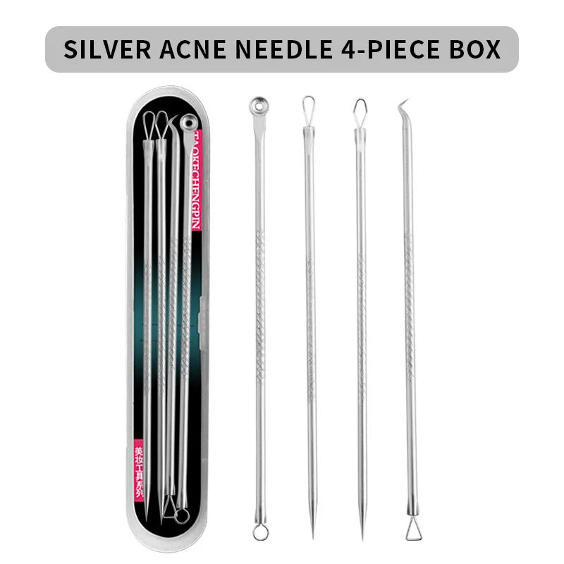 4Pcs Stainless Steel Blackhead Remover Tool Kit Face Massage Whitehead Pimple Spot Comedone Acne Extractor Face Massager