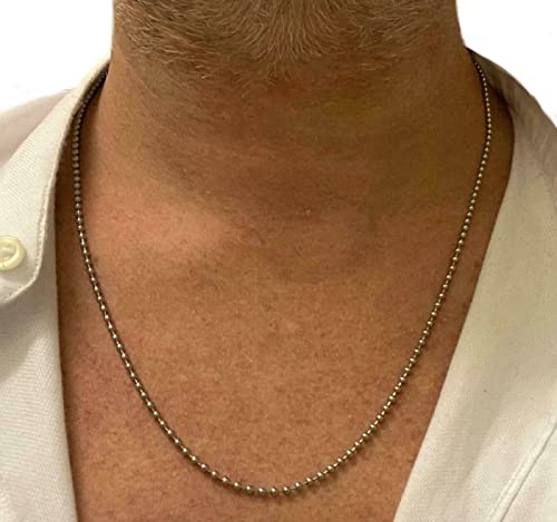 Stainless steel Catenina in acciaio inox a palline lunga 60 cm x 3 mm da uomo donna in stile militare soldato collana sfere in acciaio inossidabile