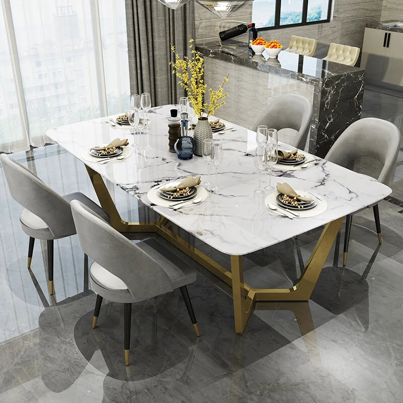 Stainless steel dinette combination simple designer creative light luxury rectangular marble dining table