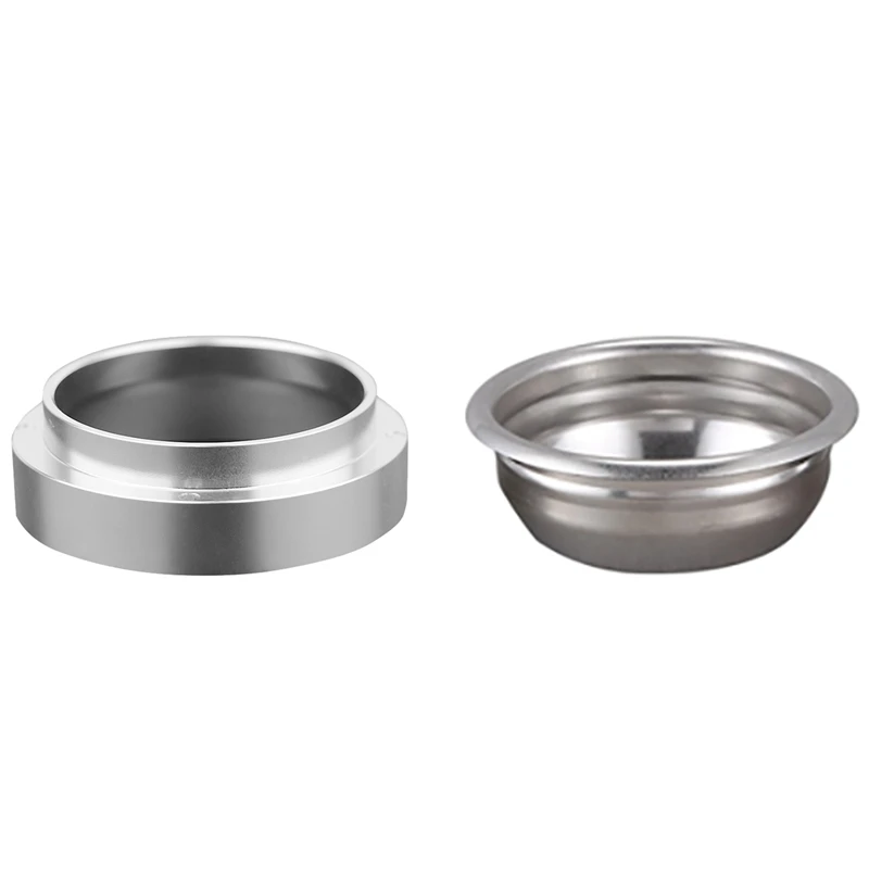 1 Pcs 58mm Stainless Steel Intelligent Dosing Ring & 1 Pcs 58mm Reusable Filter Basket Filter Basket Bottomless Filter