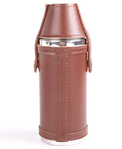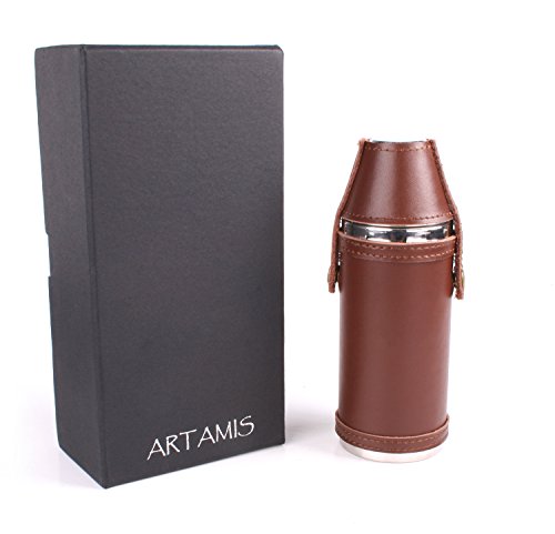Stainless Steel Large 8oz Round Brown Leather Hip Flask with 2 Concealed Cups in Lid by Widdop Bingham
