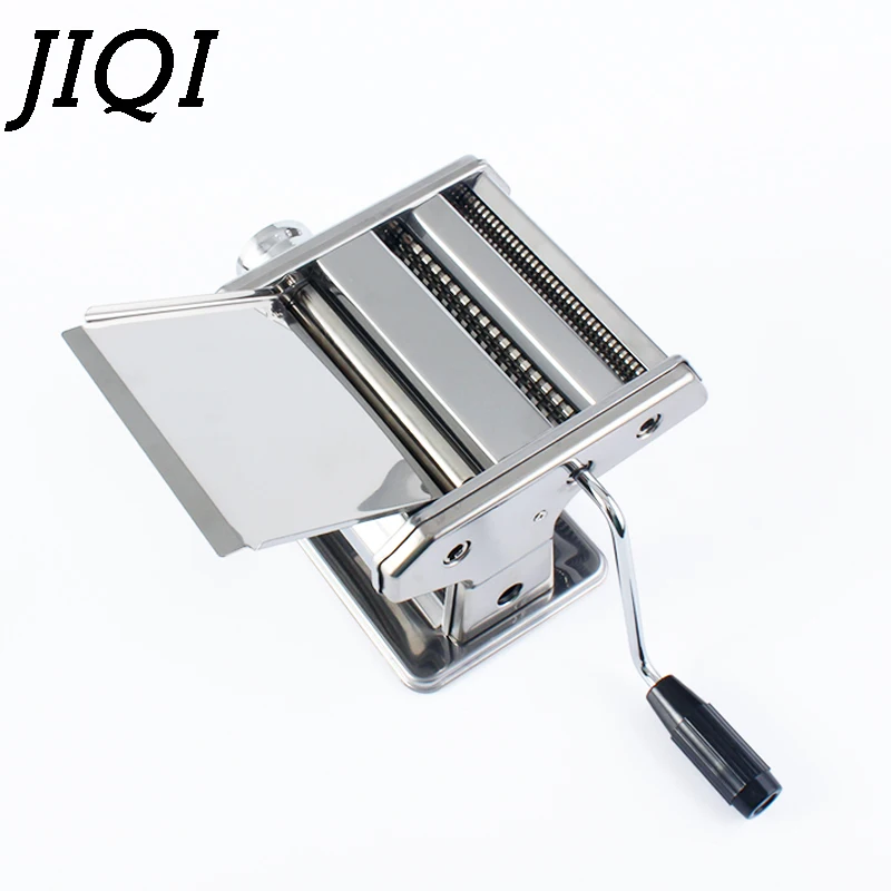 JIQI Stainless Steel Manual Pasta Maker Handmade Spaghetti Press Machine Roller Noodles Hanger Hand Operated Crank Dough Cutter