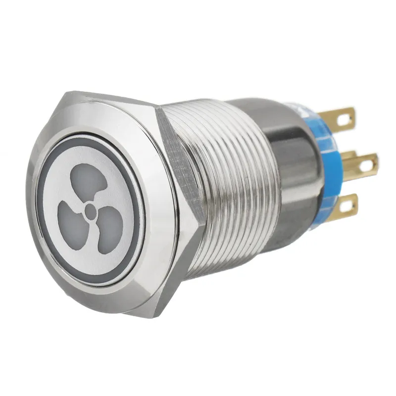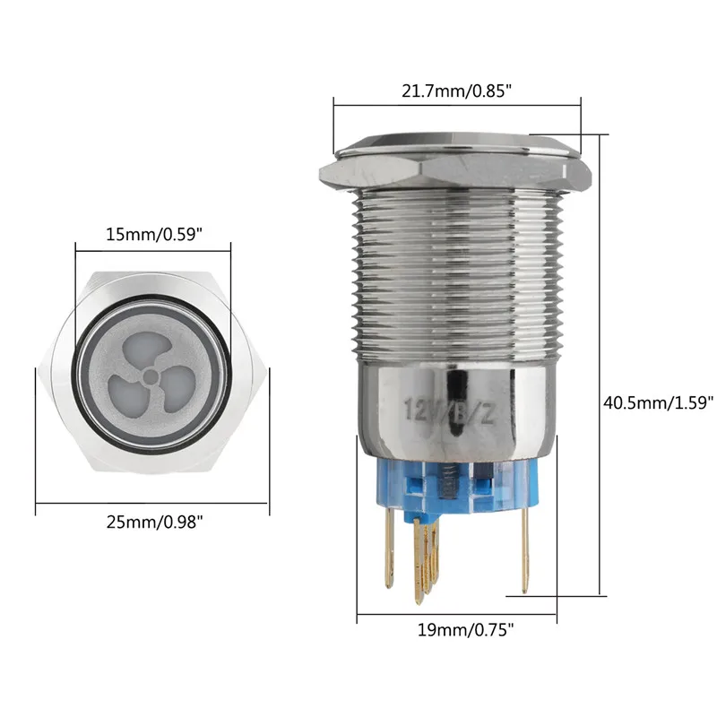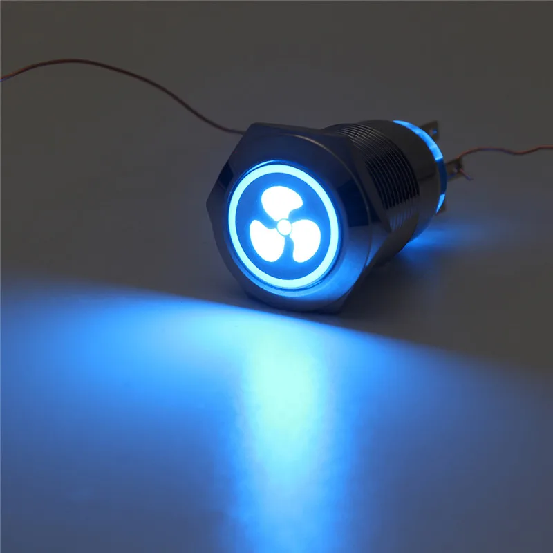 1PC 19mm 12V LED Stainless Steel Metal Self Lock Fan Push Button Switch Panel On-off Switch For Car Lorry Boat