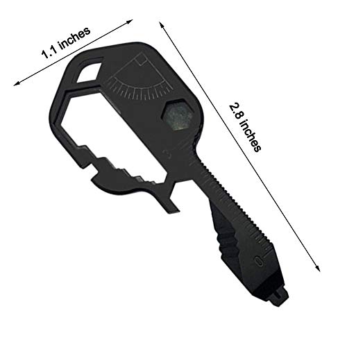2 Pcs 24 in 1 EDC Stainless Steel Multi-tool Key Shaped Pocket Tool for Keychain W/bottle Opener, Ruler, Screwdriver, Measuring Instrument (Black)