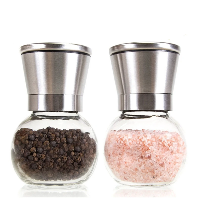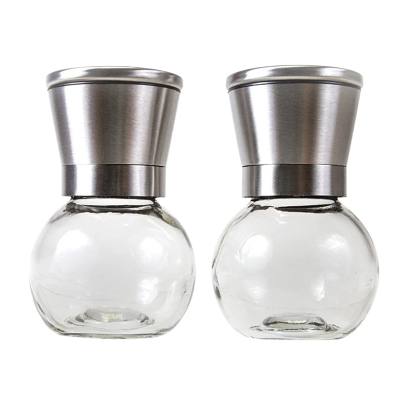 2Pcs Stainless Steel Pepper Grinder Manual Pepper Mill Seasoning Bottle