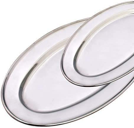 STAINLESS STEEL OVAL RICE TRAY PLATE SERVING DISH PLATTER MEAT BUFFET KITCHEN, Acciaio INOX, 30 cm