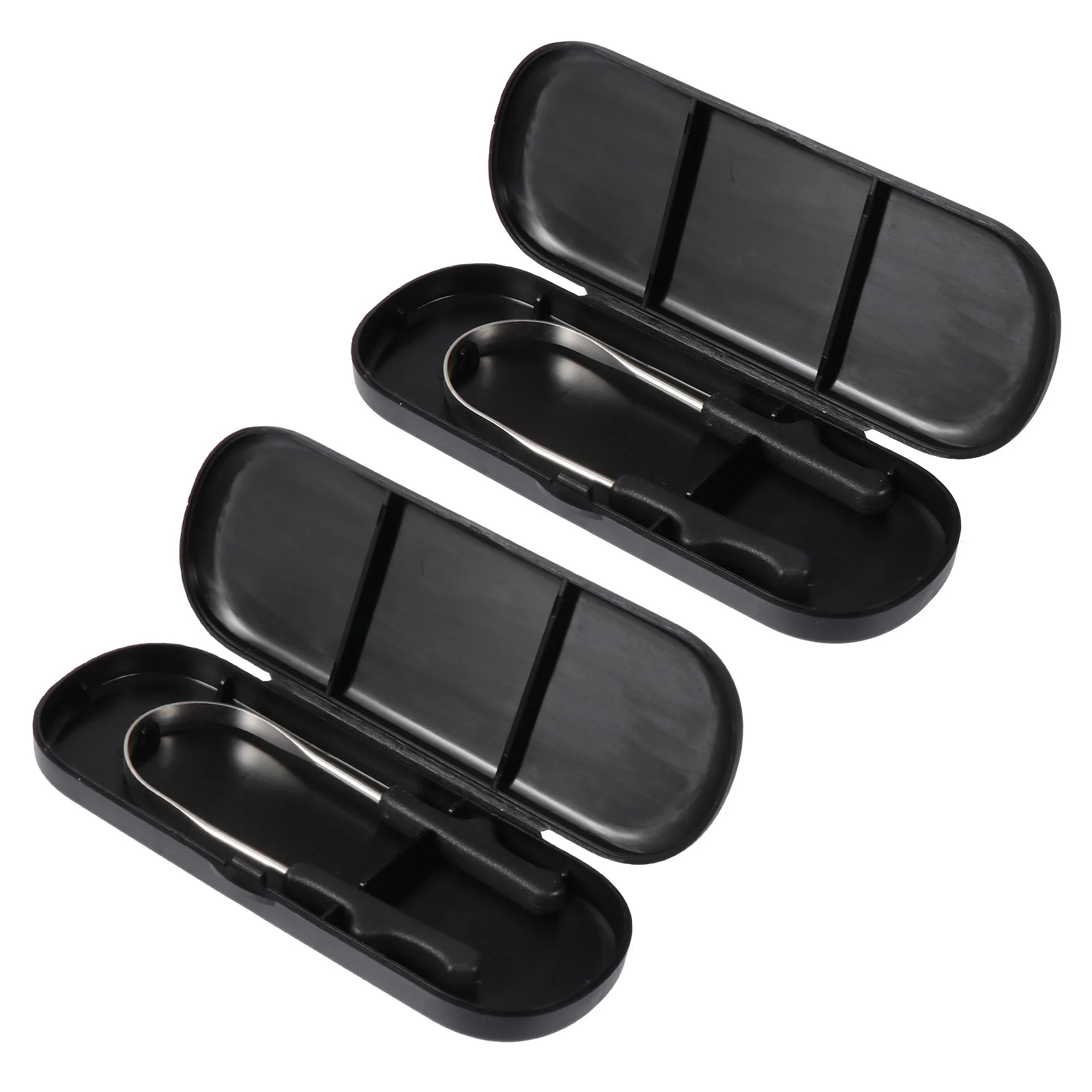 2 Sets Stainless Steel Tongue Cleavers Tongue Scrapers Cleaning Tools (Black)
