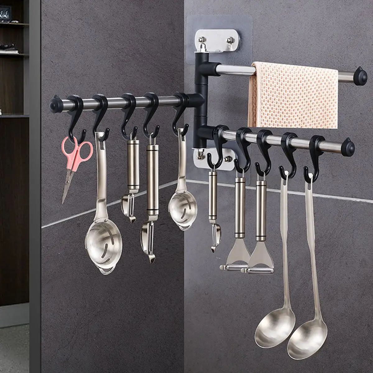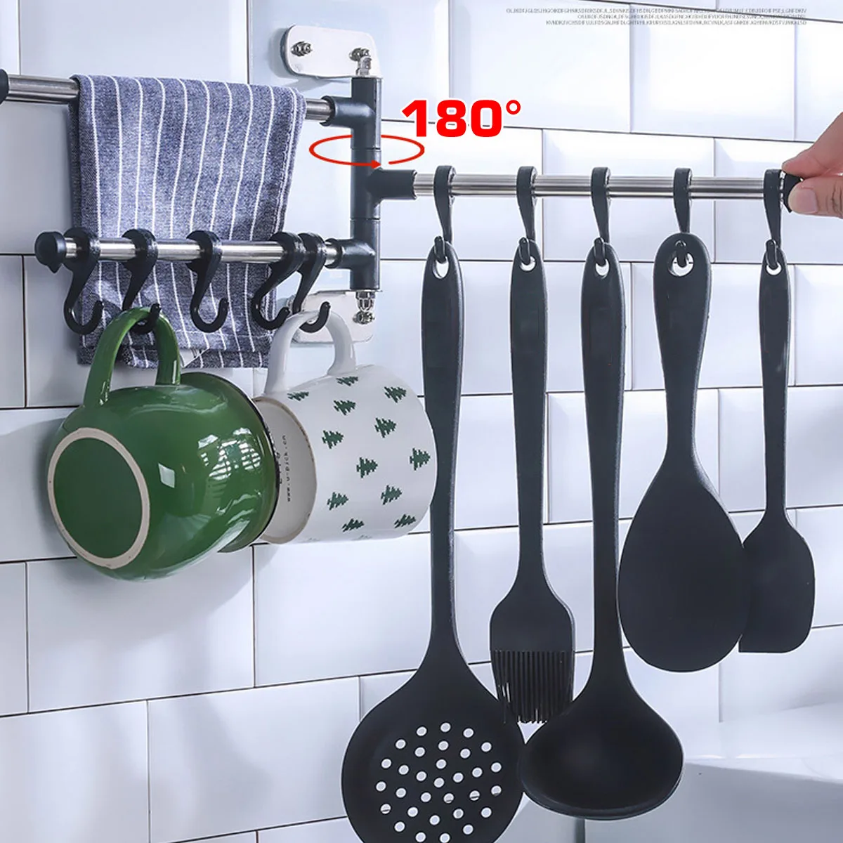 Stainless Steel Towel Bar Rotating Towel Rack Bathroom Kitchen Wall-mounted Towel Polished Rack Holder Desktop Display Shelf