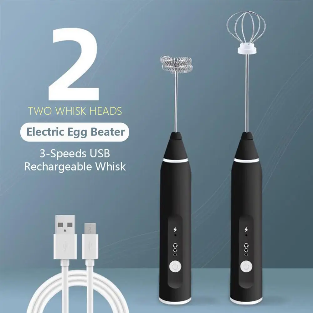 2 Stainless Steel Whisk Electric Coffee Milk Blender 3-Speeds Adjustable Blender USB Rechargeable Mixer Frother Stirrer Tool