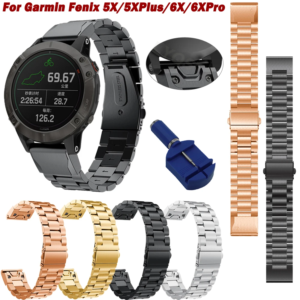 26mm Stainless steel Wrist Band Strap For Garmin Fenix 5X/6X/Descent MK1/D2 Delta PX Easyfit Install Metal Watch Bands Straps