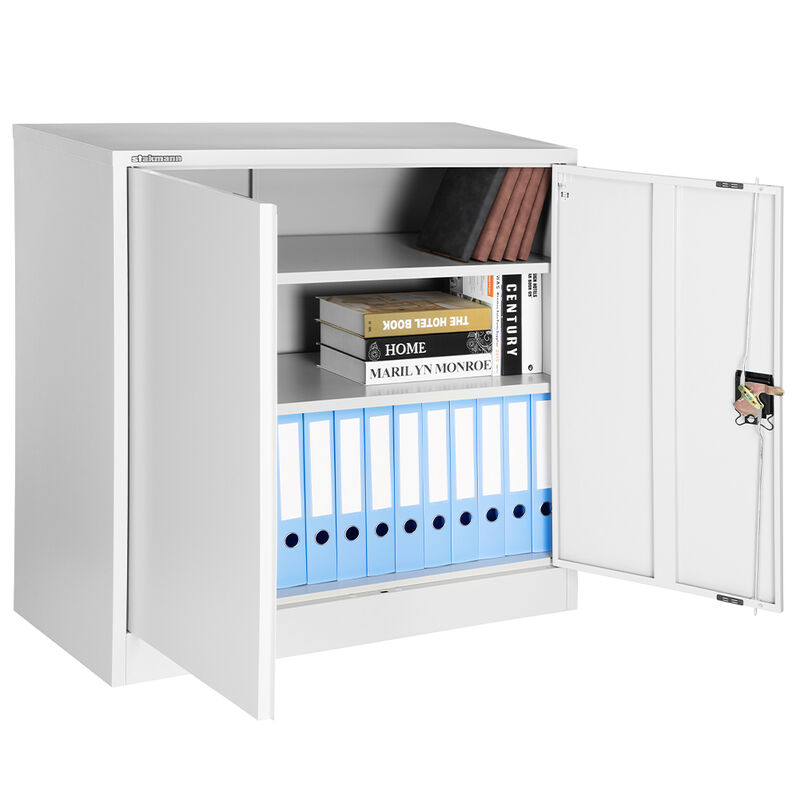 Cerchi un mobiletto che ti permetta di abbellire i tuoi ambienti senza occupare troppo spazio? Ottimo, allora STAKMANN ha quello che fa per te!Organizza le tue cose con stile e funzionalità con il armadietto multiuso.Realizzata con una solida struttura in acciaio è fornita di comodi ripiani interni per appoggiare i archiviazione documenti fissi per ufficio e tante altre cose..Mobile poco ingombrante, in stile moderno e semplice, è ideale per qualsiasi ufficio, soggiorno, corridoio ed aree da ingresso anche meno spaziose.I materiali utilizzati e le sue caratteristiche rendono il nuovo mobile un complemento di arredo di altissima qualità perfetto per chi ama arredare gli spazi di casa propria con stile senza rinunciare alla funzionalità SPECIFICHE PRODOTTO:Materiale: acciaioSpessore: 0,5 mmDimensioni: 90 (lunghezza) x 40 (profondità) x 90 (altezza) cmColore: grigioNumero ripiani: 2Ripiani regolabili: siNumero scomparti: 3Serratura a 3 puntiNumero serrature: 1Numero chiavi: 2 CONTENUTO