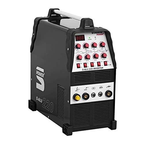 Stamos Power - S-ALU 220 - Saldatrice TIG AC/DC Alluminio Ad Elettrodo (220 A, 230 V, Funzione Puls, 2/4 Tempi, Ventilatore, Cavo 3 Metri, Gas)