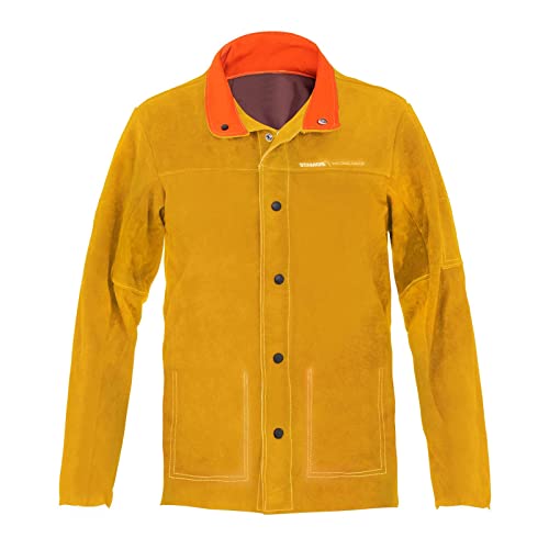 Stamos Welding Group Giacca in Pelle per Saldatore Giacca Protettiva per Saldatura SWJ02L (Taglia L, Dorata, Crosta di Pelle Bovina)
