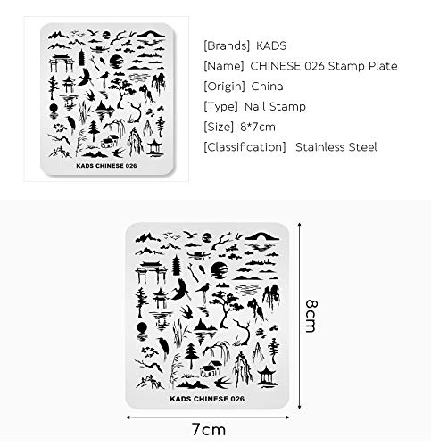 KADS Nail Stamp Template Nail Plate Mountain & Crane & Pine (CN026)