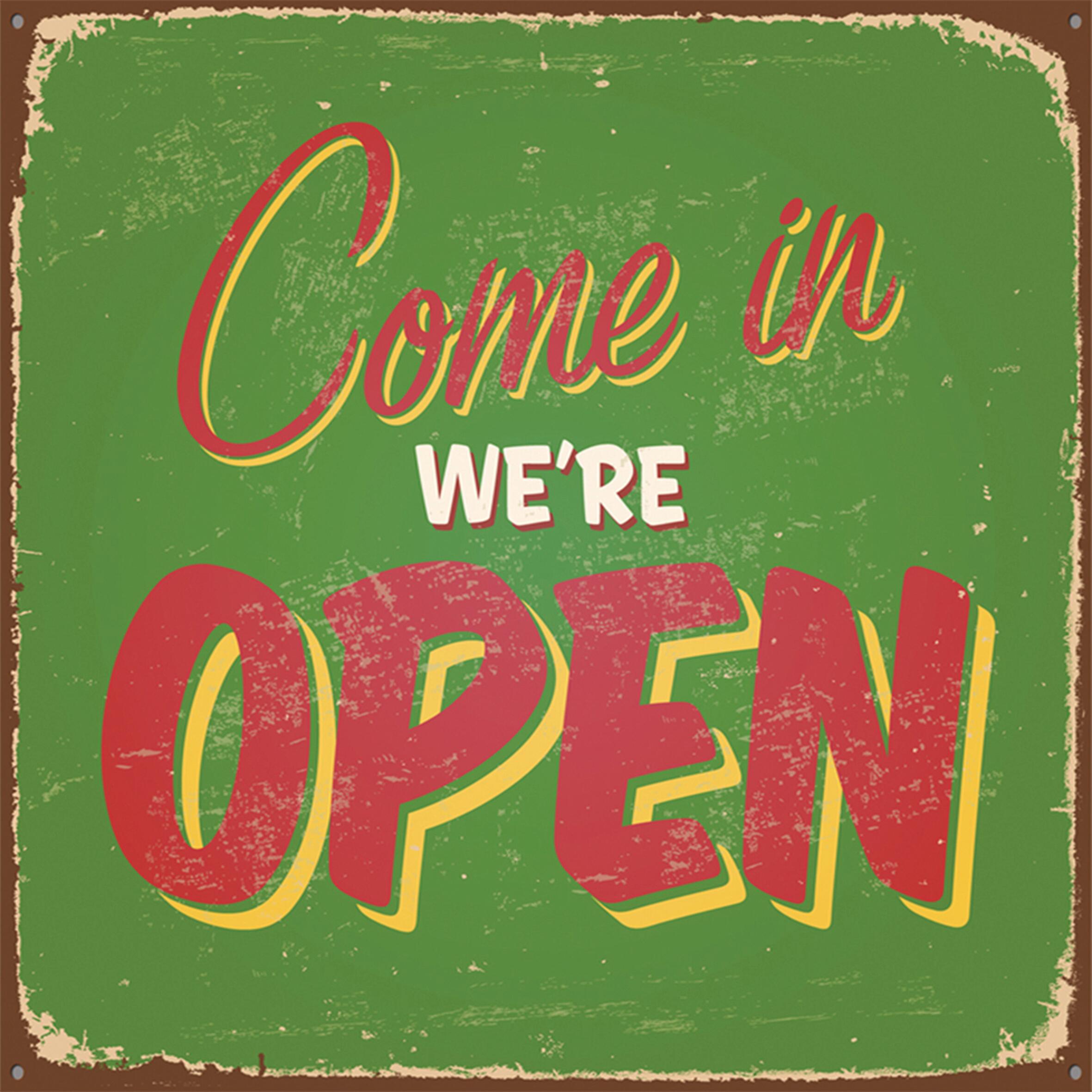 Stampa su tela Come in We' Re Open 40x40 cm;