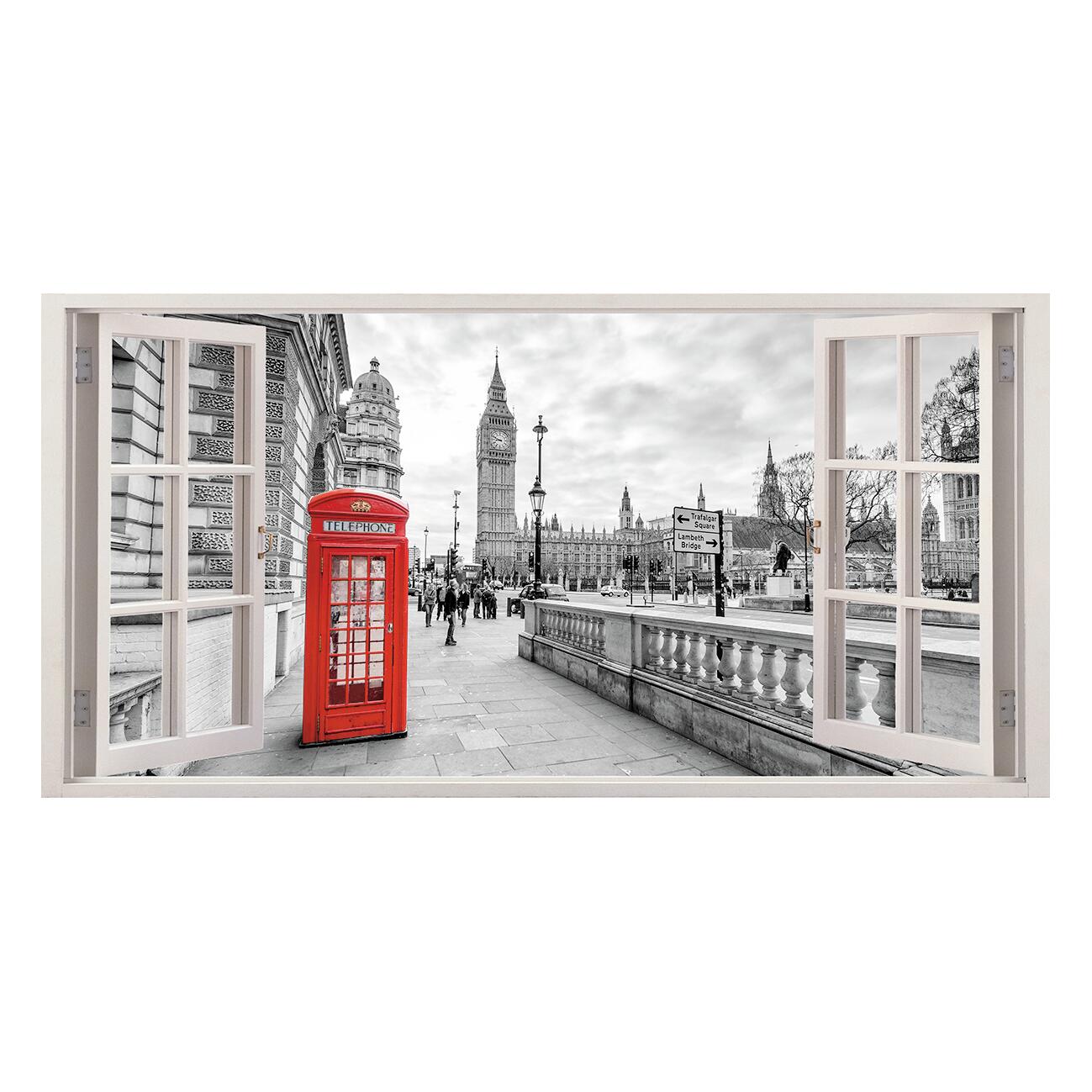 Quadro Finestra Londra, stampa su tela, dimensioni 70x140 cm
