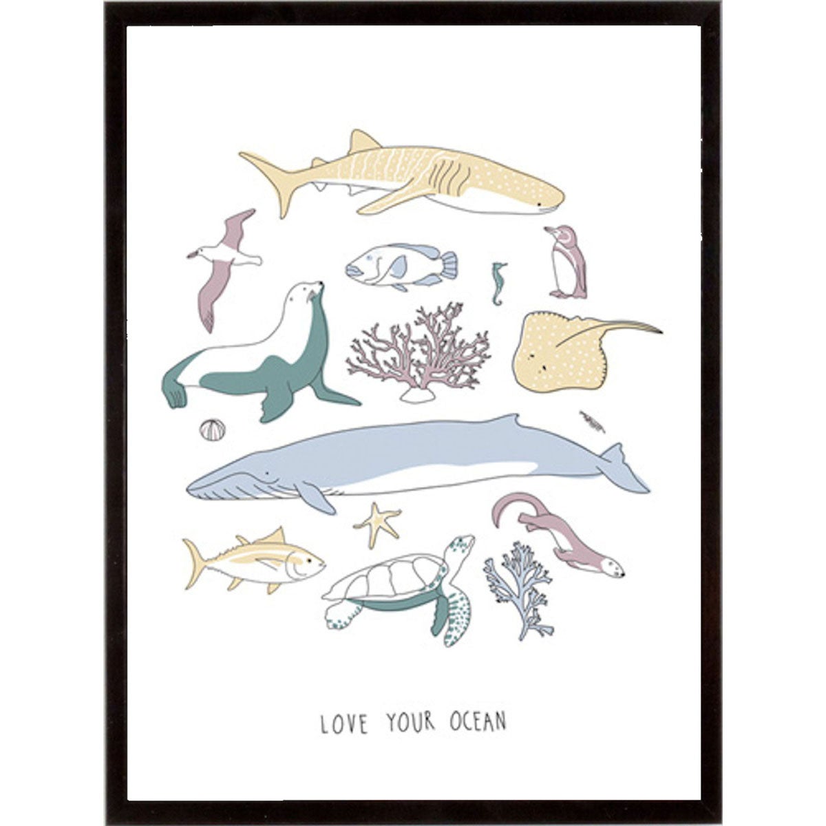 Stampa incorniciata LOVE YOUR OCEAN 32x42 cm;