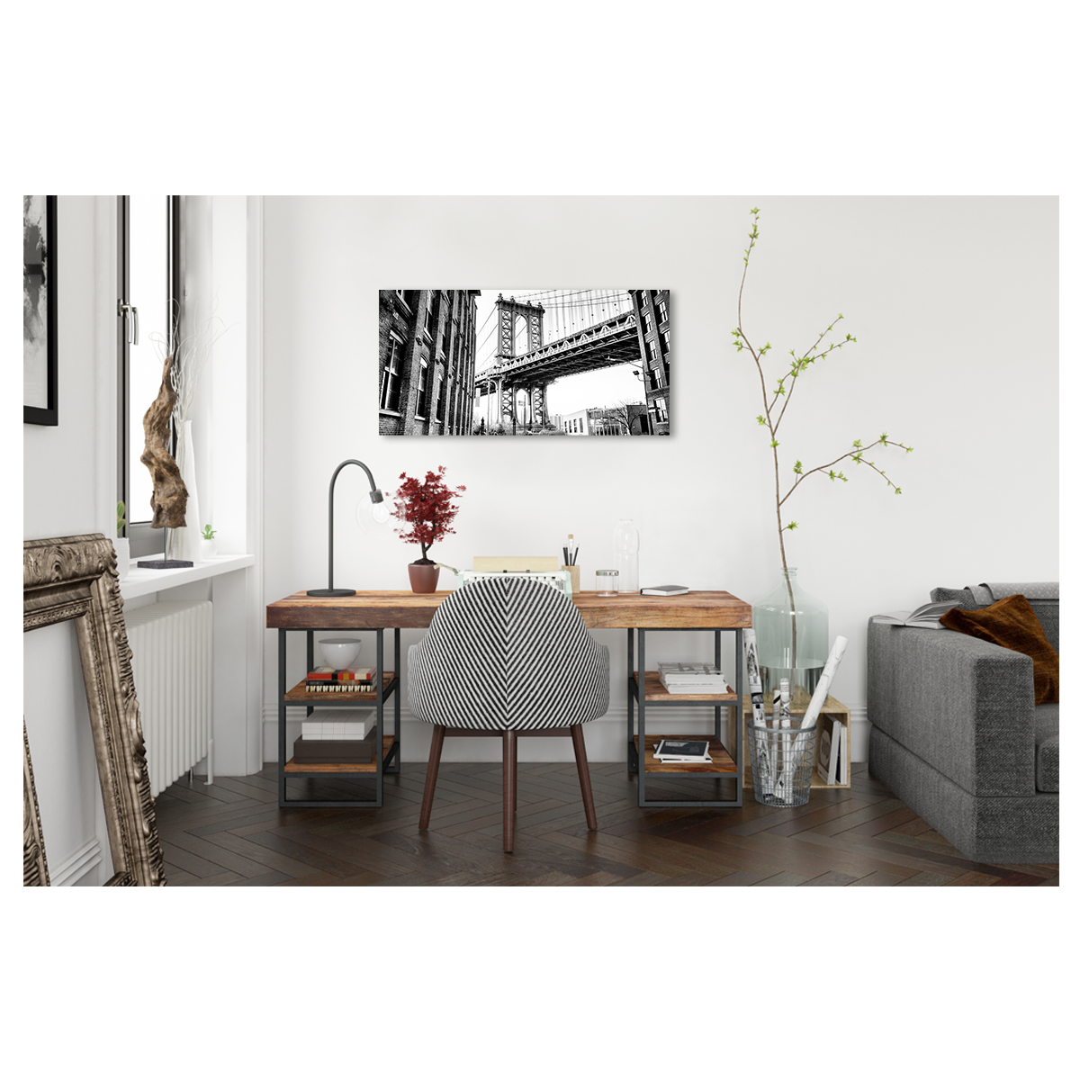 Quadro zoom manhattan bridge b&w 70x140