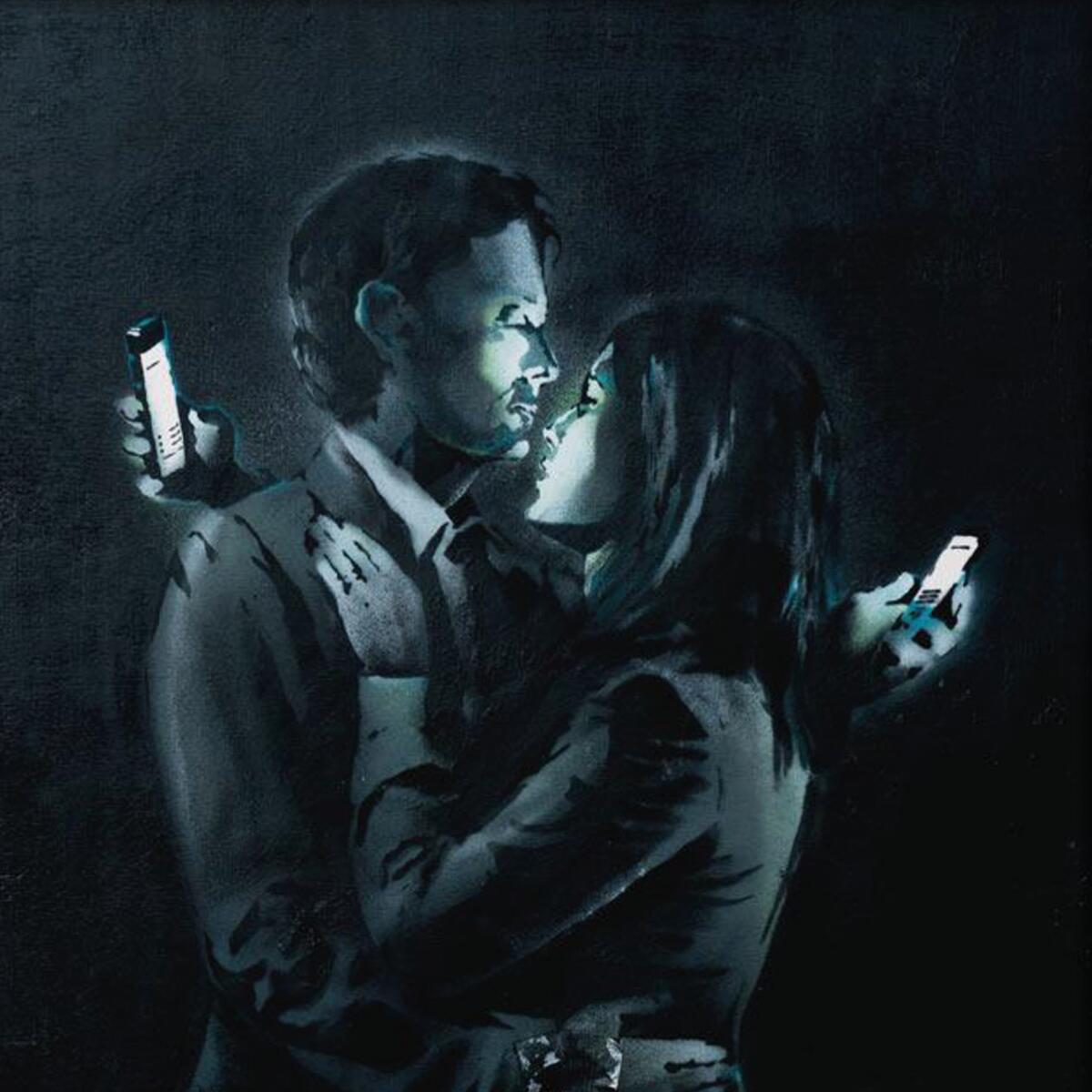 Stampa su tela, Banksy, Mobile Phone Lovers, dimensione 50x50