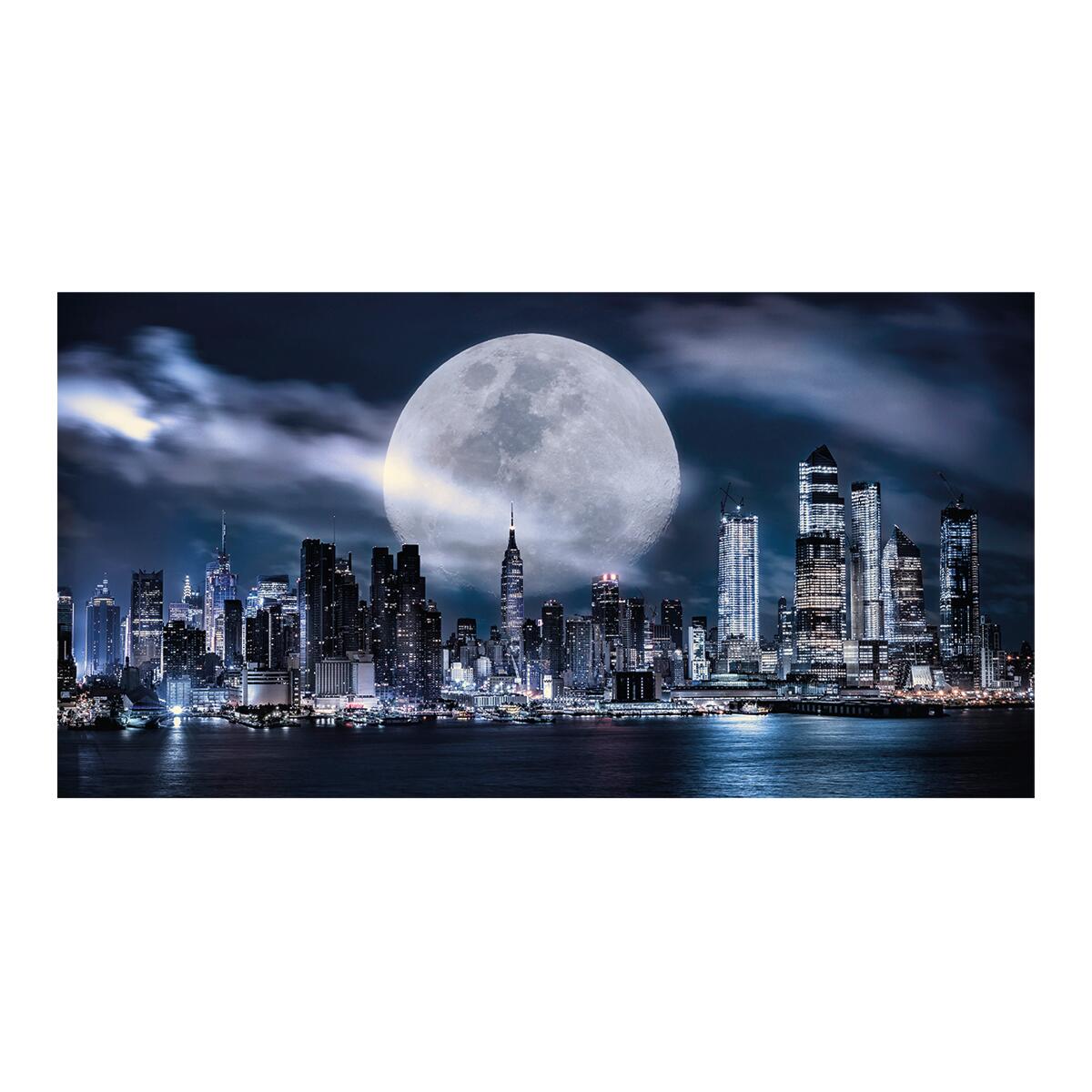 Quadro su tela glitter WOW, Luna piena su New York, dimensione 75X145.