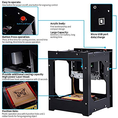 NEJE Stampante Laser Engraver per Incisione 1500mW Mini Engraving Macchina 550 * 550 Pixel - 405nm Wavelength - Engraving Space 42 * 42 * 78mm - 6000mAh Li-ion Battery - Bluetooth 4,0 within 10 Meter