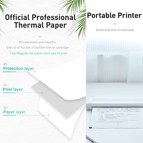 Stampante termica portatile senza inchiostro, formato A4, stampante Bluetooth, mini stampante compatta per uso domestico e ufficio, monocromatico (50 fogli di carta da stampa)