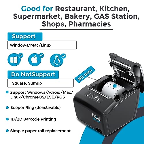 ✅ PER TUTTE LE IMPRESE. Stampante per ricevute e pre conto con apertura automatica del cassetto contanti e il design da appendere a parete, eccellente struttura impermeabile, antiolio, anti-polvere. Questa stampante termica per ricevute è essenziale per tutti i tipi di imprese che si basano su sistemi di punti vendita e registratori di cassa, compresi bar, ristoranti, farmacie, saloni di bellezza, reception e supermercati. Stampa codici a barre 1D/2D e multilingue.