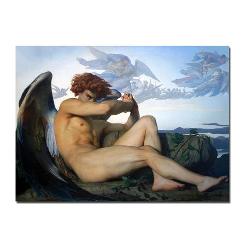 Stampe su Tela Angelo Caduto di Alexandre Cabanel Dipinto Ad Olio su Tela Poster Religione Cristiana Arte della Parete per La Decorazione Domestica (70x100 cm(Senza Cornice))