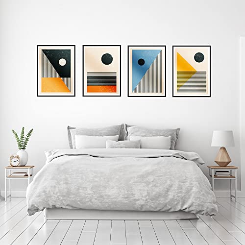 Set di stampe da parete premium stile bauhaus astratti quadri moderni decorazioni da muro poster abbinati come arredo soggiorno camera 4xA4 21x30cm senza cornice