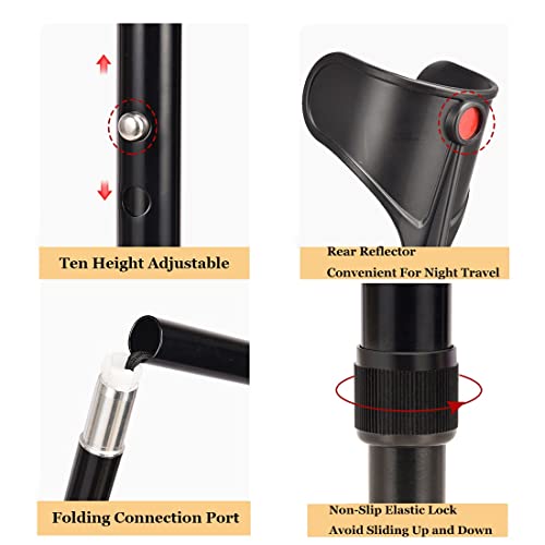 Stampelle Ortopediche, Stampelle Canadesi Pieghevoli, Comode da Impugnare E Resistenti all'Usura, Regolabile in Altezza, Portata 140Kg, Leggeri Equilibrio Speciale, Nero/Grigio