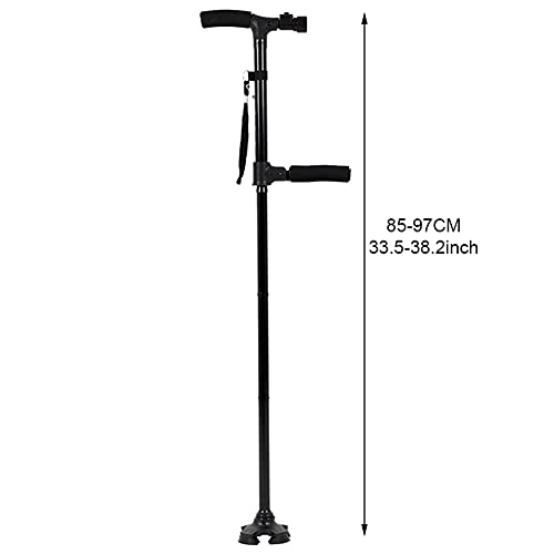 D&M Stampelle Ortopediche Regolabile in Altezza per Anziani, Bastone da Passeggio Portatile, con luci a LED, Nero, Stampelle Pieghevoli in Alluminio (1 unità)