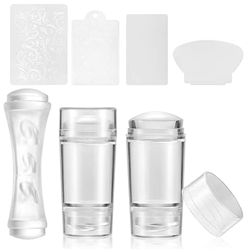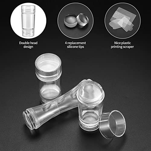3 Pz Stamper per Nail Art, Stamper per Stamping Unghie con Raschietto, Timbro in Silicone Trasparente con Cappuccio per Manicure Fai da Te French Unghie Artistiche