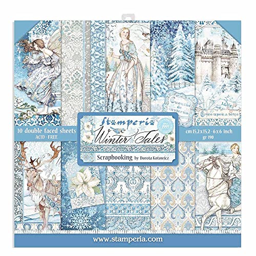 STAMPERIA INTL, KFT (3PL) Blocco Extra Piccolo, 10 Fogli, 15,24 x 15,24 cm, Double Face Winter Tales, Multicolore, 15.24x15.24