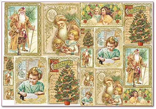 Stamperia Motiv della paglia di seta "Christmas Cards 35 x 50 cm 25 G/MQ abete albero di Natale Babbo Natale fai da te