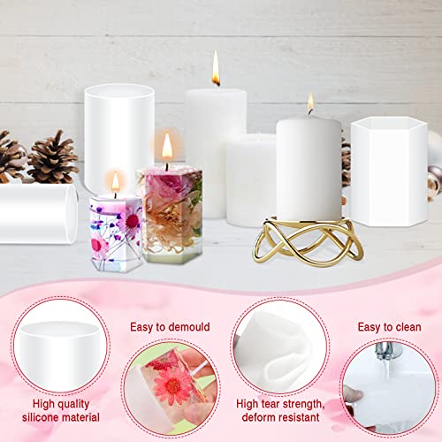 Stampi Per Candele 6 Pezzi Pilastro Esagonale/Cilindro Stampi In Silicone Per Candele Con 50 Stoppini,4 Porta Stoppini,10 Etichette a Coda Di Rondine e 3 Adesivi,Per Candele Profumate Stampi In Resina