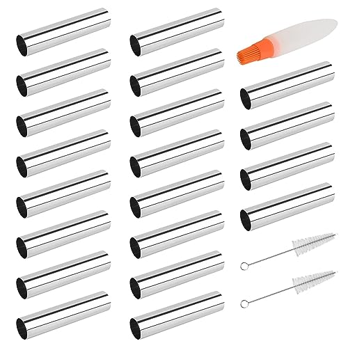Stampi per Cannoli, MKNZOME 20 Pack Cannoli in Acciaio Inossidabile Forma Tubi Rotolo di Crema Stampo per Cornetto Cono Stampo a Forma Tubolare per Cannoli Tubi Cornetto Forme per Cottura Stampo