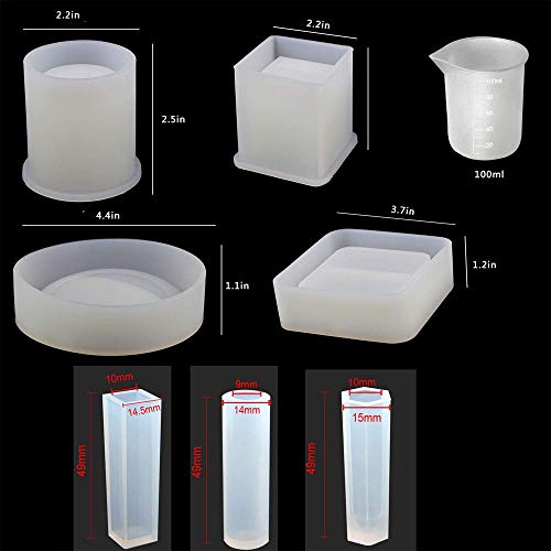 Stampi per colata in resina, stampi in resina epossidica in silicone per gioielli fai da te, candele, sapone, con tazza di misurazione in silicone e bastoncini di legno (Style2)