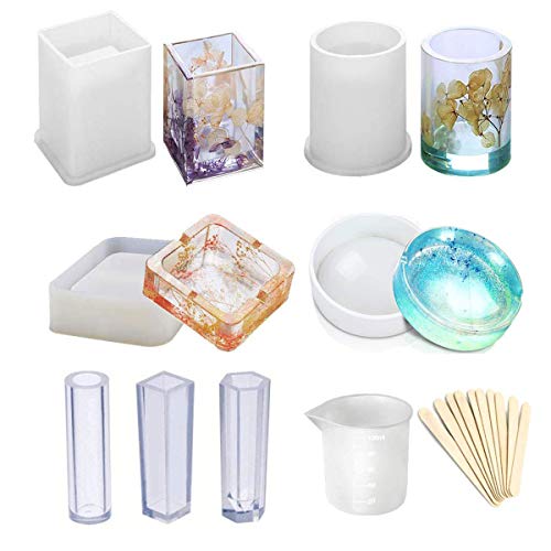 Scelte multiple: viene fornito con 6 stampi per colata in resina tra cui sfera, cubo, diamante, piramide, piramide triangolare, pietra, extra dotati di un misurino in silicone, 10 bastoncini di legno. Puoi scegliere le tue forme preferite per realizzare opere d'arte.