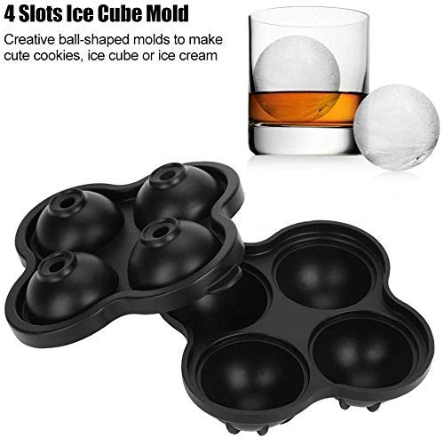 Stampi per ghiaccio ilicone a Forma di Palla Ice Cube Mold Tray Ice Maker Maker Mold 4 Slot Diy Creativo Food Grade Flessibile e Riutilizzabile(nero)
