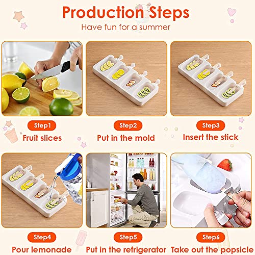 Stampi Ghiaccioli Ice Cream Mould,2 pezzi Silicone Gelato Stampo Pop Lolly Tray cavità Ovali Classiche 4,con 100 Bastoncini di Legno, in silicone, per gelati, torte, cioccolatini (bianco)