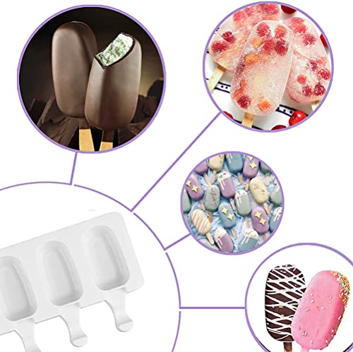 U/N Stampi per Ghiaccioli in Silicone,Stampini per Ghiaccioli, 2 pezzi Mini stampo per gelato a 4 celle + 50 pezzi Bastoncini di legno,Stampo Ghiaccioli al Cioccolato congelato Fai da Te