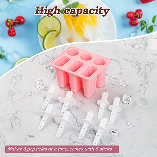 WD&CD Stampi per Ghiaccioli in Silicone a 6 Fori, Stampo per Gelato Riutilizzabile Senza-BPA, Set Stampi per Preparazione di Ghiaccioli/Gelati/Sorbetti per Bambini, con Bastoncini 8 Pezzi(Rosa)