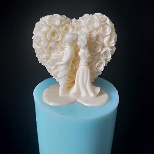 Vari stampi per resina in silicone creativo Stampi for candele da sposa e sposo, utensili artigianali da zucchero, stampi di cioccolato, bakeware, sapone in silicone cuore rosa, stampi for candele Cas