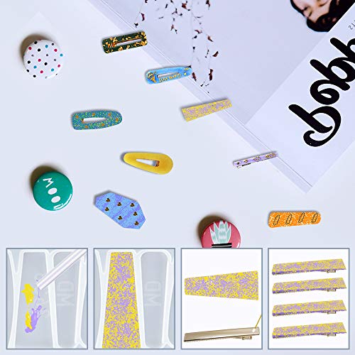 36 stampi in resina siliconica fai da te Mollette per capelli, Mollette in resina epossidica MOCOLOM con 30 fermagli per capelli dorati, set di forcine per capelli, ciondoli e accessori