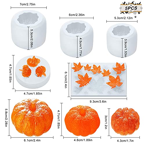 Set di stampi in resina di zucca,5 pezzi stampi in silicone in resina di Halloween Stampo in resina epossidica di zucca 3D Ringraziamento Foglia d'acero Stampo in silicone per feste in Halloween
