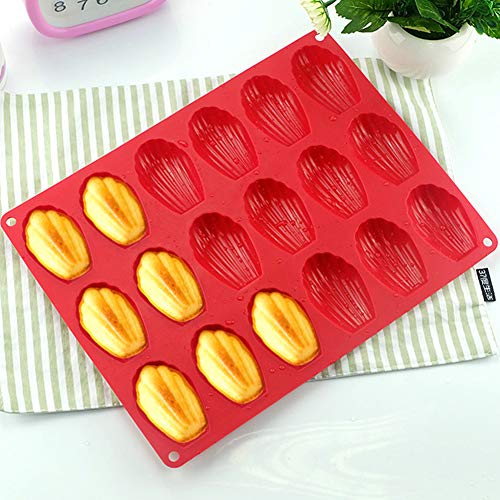 18 stampi in silicone per biscotti e torte, per pasticceria, conchiglie madeleine, resistenti al calore, per caramelle e cioccolato, colore: rosso
