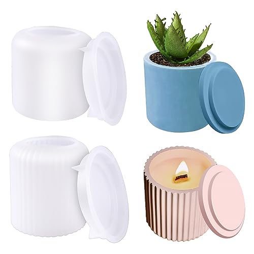 2 Stampi In Silicone Per Candele Con Coperchio, In Vetro Per Candele, In Calcestruzzo, Portacandele A Cilindro, Portacandele A Forma Di Candela, In Silicone, Per Candelabri Fai Da Te, Vaso