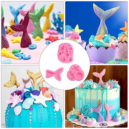【Stampo in silicone per conchiglie di sirena】 Riceverete 3 diversi tipi di stampi per fondente in silicone con motivi marini, tra cui stampo per coda di sirena, stampo per stella marina, stampo per cavalluccio marino e vari tipi di conchiglie e forme. Le bellissime creature marine vi aiuteranno a preparare un dessert delicato e adorabile per feste di famiglia, feste di compleanno, feste di Natale e altre feste a tema.