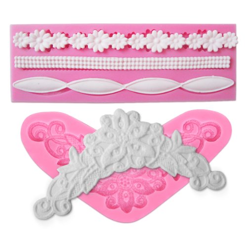 2 Stampi Silicone Pizzo Merletto Per Pasta Di Zucchero E Fondente Torta Decorazione Feste/Natale/Nozze