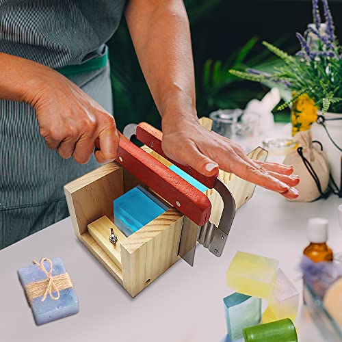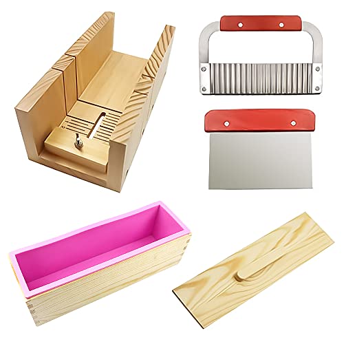 Kit di stampi da taglio per sapone, kit fatto a mano per la produzione di sapone, tagliapasta regolabile in legno, scatola di legno con coperchio, raschietto ondulato e dritto in acciaio inossidabile